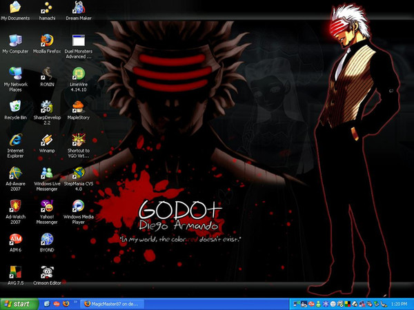 I think I did pretty good with this pic. I'm not much of an artist, but if I have a base to go by, I can do a pretty decent job of getting the shapes done. I love how his head came out; it's perfect to me. But his body just disgusts me beyond no end. It's the completely wrong shape, but no matter how many times I drew it, it wouldn't come out any better, so meh. At least the colors came out okay. I'm especially glad with how the lining came out, especially with his jacket, which was a PAIN to draw, simple as it is. The arms and his eyes were draw with no base picture; I just positioned them how I wanted them, and they came out great.