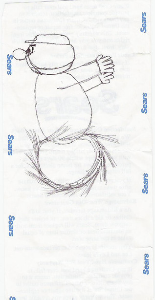 For the second question, I just drew him so big on the paper, there was no room for the rest of him.