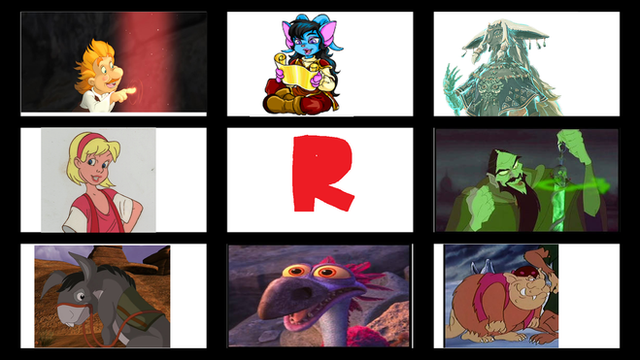 Rocky Rickaby (Lackadaisy), Rarity (My Little Pony: Friendship is Magic), Rameses II (The Prince of Egypt), Robin Hood, Rapunzel (Tangled), Richochet Rabbit), Roger Rabbit (Who Framed Roger Rabbit?), and Rafiki (The Lion King)