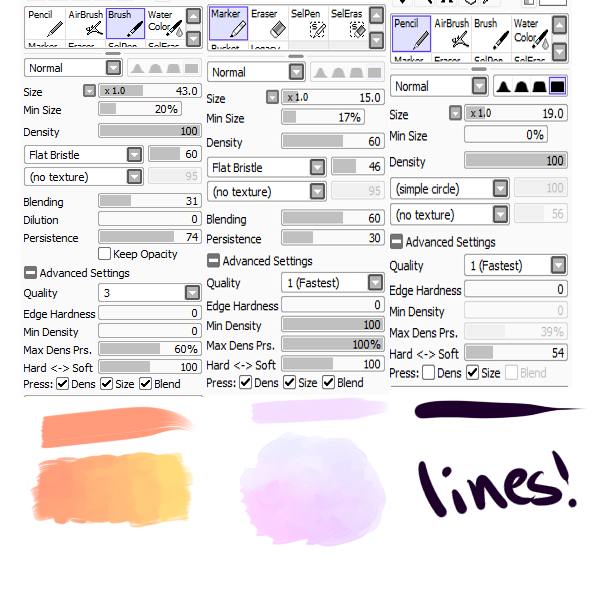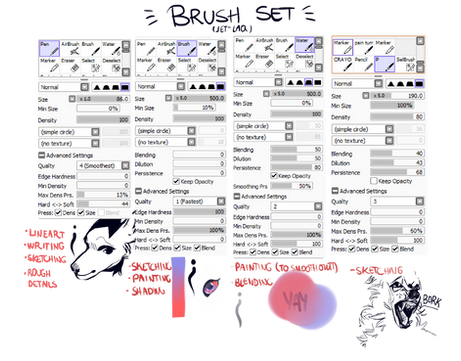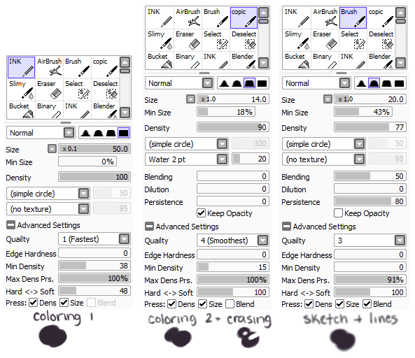 Because people asked: my SAI brushesI mainly only use two of these: the first rough brush and the default pen.