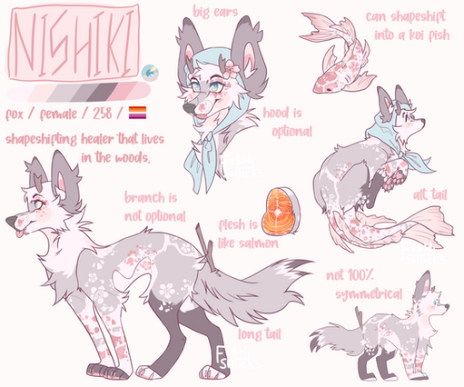 Koi BADLY needed a new ref and here it is! Right now, her species is closed and I will add more info about her later! I did this in one sitting, and I didn't set out making the ref it just happened... ENJOY!I will do refsheets as commissions- 10$ or 1000 points note me