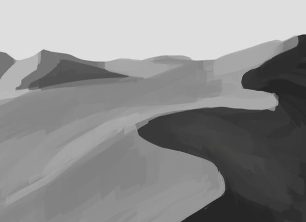 Today I tried using only three values to create a scene.(sorry for all these greyscale pictures aa)