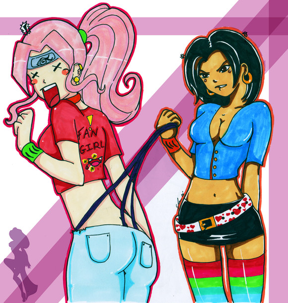 This is a very cool concept! A scene of femme-fatales' sorta girls night out! Their outfits look really sexy and I especially luv their cheerful expressions! ^^