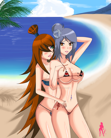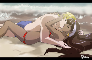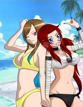 This is a commission forSo this is Belldandy from Oh my goddess! and Rangiku from Bleach. And the idea behind this is that Belldandy not knowing the ways of humans, saw a lifeguard saving someone's life. And has mistaken Rangiku as being a human in distress when in fact she's trying to catch a few rays XD