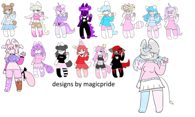 these adopts never got sold/ i had them in my files so i put them all together for a random batch of adoptables(if you cant see any of the characters i can send a separate file)