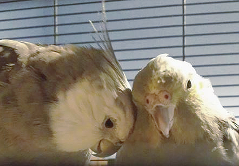I think the red looks so pretty against her black feathers. This is a cute shot of her too π, kiss for Dweezil