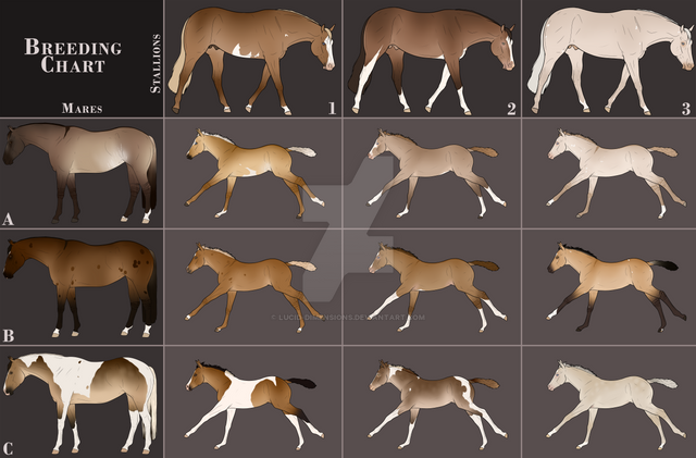 Maybe make it like a graph? First row be "average", next row be "single cream", then next row "double cream" and then do duns, champagnes, pearls[with cream gene], sooty, silver, flaxen and then do the more than one genes, with maybe sooty + flaxen + cream, or cream + dun.