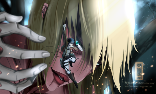 argh before I sleep, I tried to read the manga of shingeki no kyojin because I can't wait for the anime. Then I wake up thinking of this, I drew it before my drive or mood run out.Shingeki no Kyojin Fan art