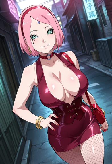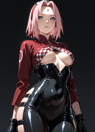 #fanart #animegirl #jeans #largebreasts #latex #leopardprint #redlipstick #sakuraharuno #sexygirl #thighhighboots #curvywoman #elbow_gloves