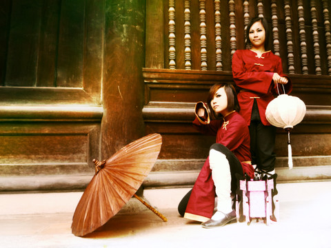 I've been thinking about Japan a lot recently, it's time of cherry blossoms, so I wanted to submit something related, I really love this photo, it was taken in the Itsukushima shrine, I'm sorry, I don't have many information about it, but the women in the photo were shopping so probably they weren't working there