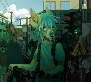 #building #busstop #city #citylights #dragon #drizzle #feline #friendship #furry #newyork #night #tokyo #wingtail #riko #stranded #mahsira