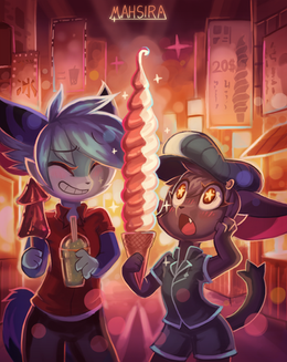 This is a collab me and worked on, we discussed several ideas about what to draw to combine both of our skills and character traits. We finally decided on the idea of Mahsira and Riko having an unexpected encounter at a bus stop during the night. We both love the view in the city in the night with the drizzling environment and just enjoy the moment!