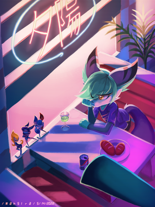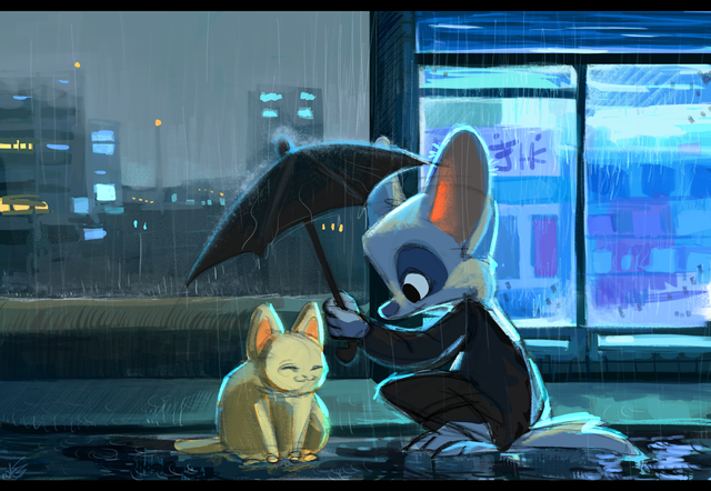 Absolutely love the background, great neon lighting, shading and smooth painting! I also see that little Luna on the side of the bus stop. I like the way you draw rain too