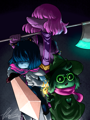#painting #deltarune #blacklight #clean #fluffy #friendship #gamefanart #iridescent #rogue #rpgcharacter #sorcerer #village #warriors #weapon #wingtail #softboy #mahsira #undertale_game #kris_deltarune #ralsei_deltarune #susie_deltarune