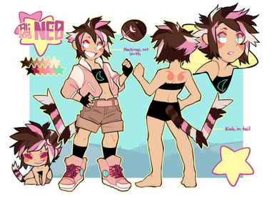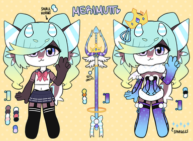 I like this character and their concept. Their palette has some really pleasing colors. I like the alternate versions of Meeks, too. That inkling version is great. The pink gradient and blue and pink spots are a nice touch. And their feral form is quite adorable. The aisha form is a good addition and the expression on that drawing is quite sweet. x3 The inclusion of all of those accessories is nice.. it does add personality. I love every one of the miniature characters you drew, especially Gir. <3 He is one of my favorites, too, and you have drawn him so cutely here. nwn Also, that Nintendo Switch looks so pretty. Excellent work with that tiny background.