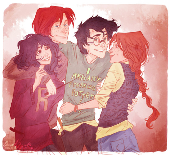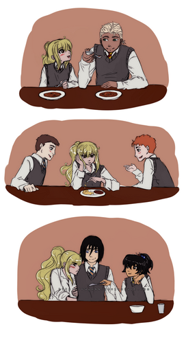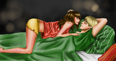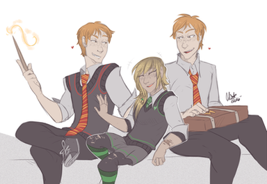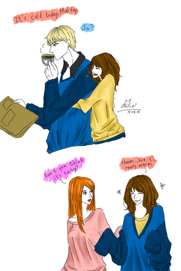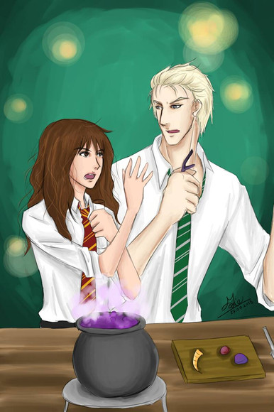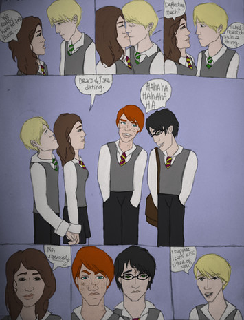 This is so far the best fanart I have seen. Why don't you combine Dramione, Ransy and Bluna together