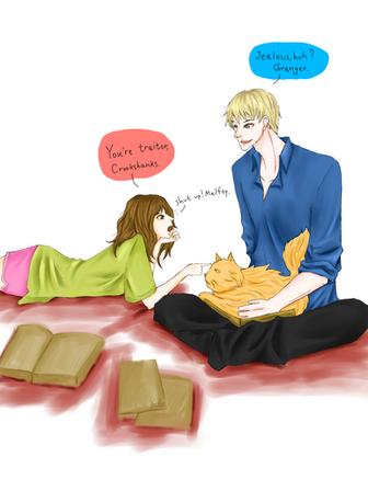But in all seriousness I love this picture to bits because this is the first picture of Dramione and Ransy in the same drawing. Your art style too makes it really cute and adorable. Be very proud of yourself I hope to see more Dramione and Ransy in the near future