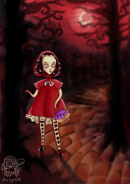I am thinking of doing a new series of four images with fairy tales. I haven't figure out all of them though. One sketch is still missing. But this is the first one of the four: Little Red Riding Hood.================