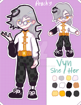 *Appearance: Kylon has long black hair with gray/white streaks, which he either ties up or leaves down.He has purple-to-gray pupils, on both of his eyes. He consistently wears a lilac-yellow barracks cover cap, that has a yellow wing with it. His left arm has a cast on it, as his right arm is usually covered.*