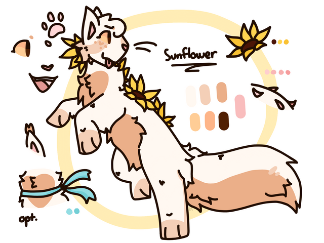 #digitalart #originalcharacter #characterdesign #feline #referencesheet #bowtie #digitaldrawing #digitalillustration #earrings #sunflower #braidedponytail