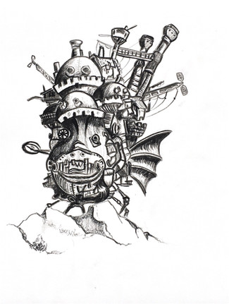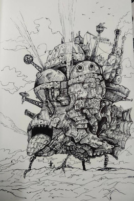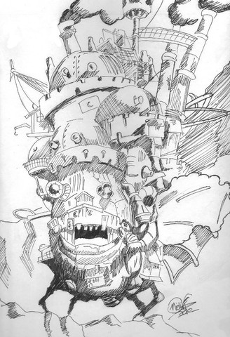 Inktober Day 14: CastleHowls Moving Castle, done with ink!