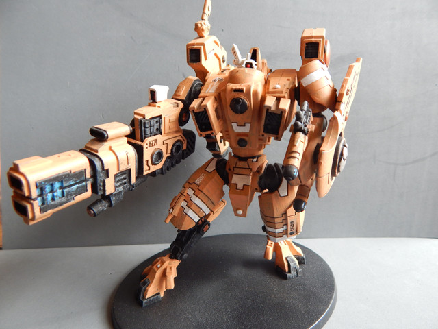 A wild Tau appeared!Not the sort of thing I've been doing recently, but this is such an awesome model it demanded to appear here. My Riptide is basically built straight out of the box- I considered magnetizing the main weapon but it would be a bit of a faff and I don't see myself using the alternative Heavy Burst Cannon. I may mount it for use as part of a Tau Aegis Line at some point.