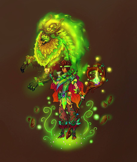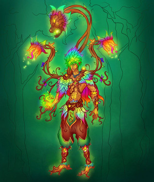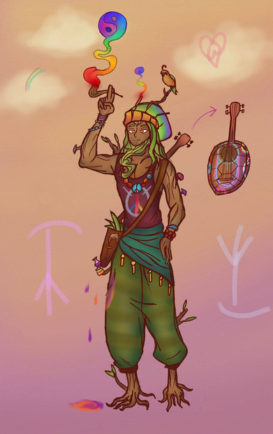 Bio: Razdda Farr is a witch doctor from the Razarian Skylands. He was a man searching for deeper meaning in life and traveled up an undiscovered mountain search of enlightenment. At the height of the mountain he found a grove of hallucinogenic plants that put him into a dream like state for months. When he awoke he was wizened, realizing the spiritual connection between all things, his eye color changed, and had plants growing from his hair. People who've heard of what happened came to him to follow his spiritual teachings, creating the Razdari religion. After he died the mountain he died on became known as Mt Ganjani, and his soul became one with the mountain. His spirit stays there eternally, guiding people who need help on their spiritual journey.