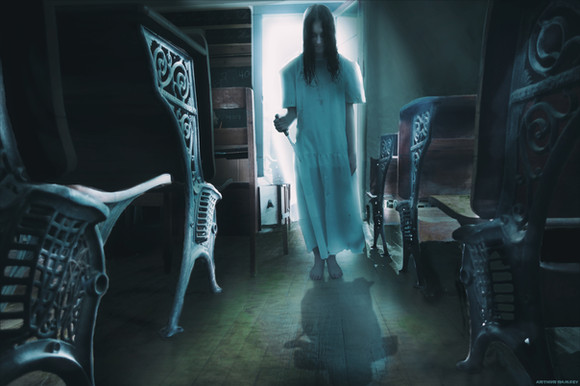 can it possibly be a woman dressed in white in a dark room........?????? FADED?????????????