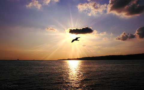 this is one beautiful shot of the sky and sea (and the bird)