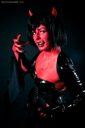 Wow! Tis not nearly as much the fantastic quality of the make-up that makes this persona, but the perfection of the mood and manner that lady projects as she assumes the demoness guise. I think no matter how you dressed he up, ou simply, could not take her to high tea in heaven form all i see in her expression.