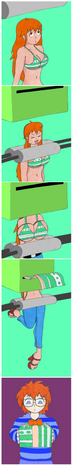 Suddenly, the machine starts shaking, and black smoke comes out. It just can't bring itself to ruin a nice pair of tits.