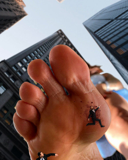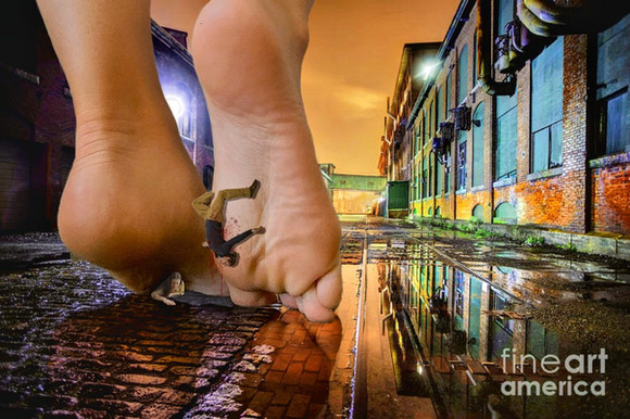 Sunlight shine through the stained glass windows on the building on the street that @shimmersonora was walking down. And made the situation that the tiny people were facing even more surreal. It almost made it hypnotizing looking at her beautiful looming soul above them right before it crashed down onto them making them nothing more than a nuisance to be scraped off later.