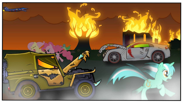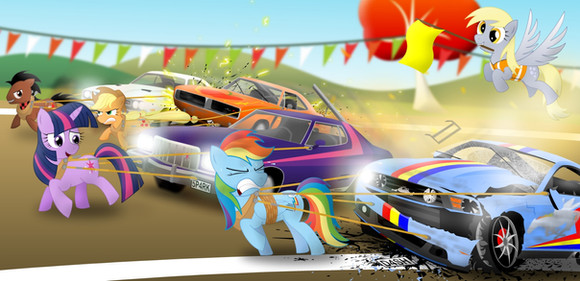 Fast cars, explosions, video games, and ponies. Awesome! And I love the details!