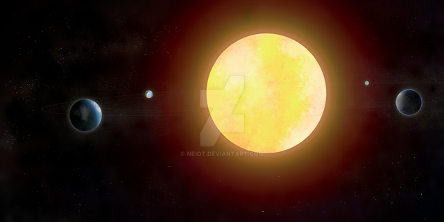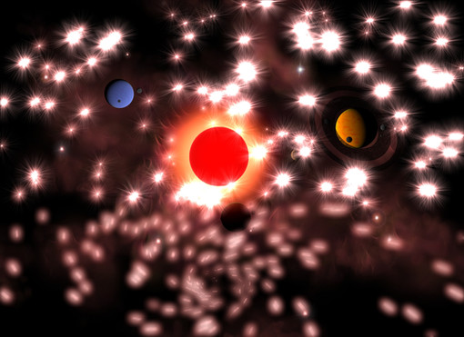 Krypton and its moon orbiting their red giant sun.Related content