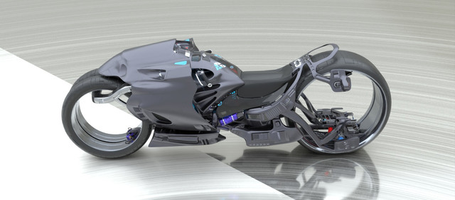 The look is amazing. However, motorcycles require tires with more rounded profiles in order to turn effectively. Motorcycles with car-like tires, where the profile is mostly flat as shown here, reveal non-motorcycle-like intentions.Β