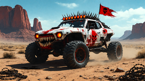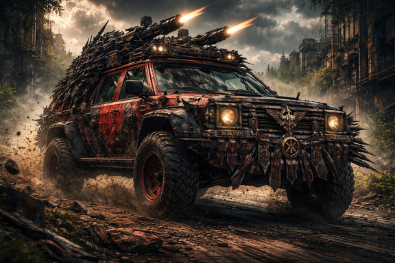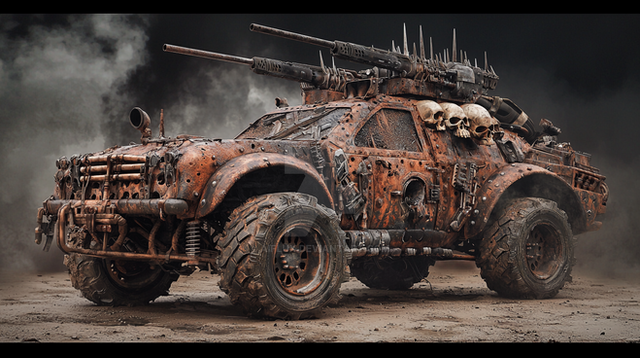 #actionmovie #apocalypse #armored #custom #madmax #metal #modifiedcar #postapocalypse #raider #rust #sciencefiction #spikes #survival #transportation #wasteland #wornout #postapocalypticworld #offroadvehicle #combatvehicle #gloomyatmosphere #apocalypsemachine