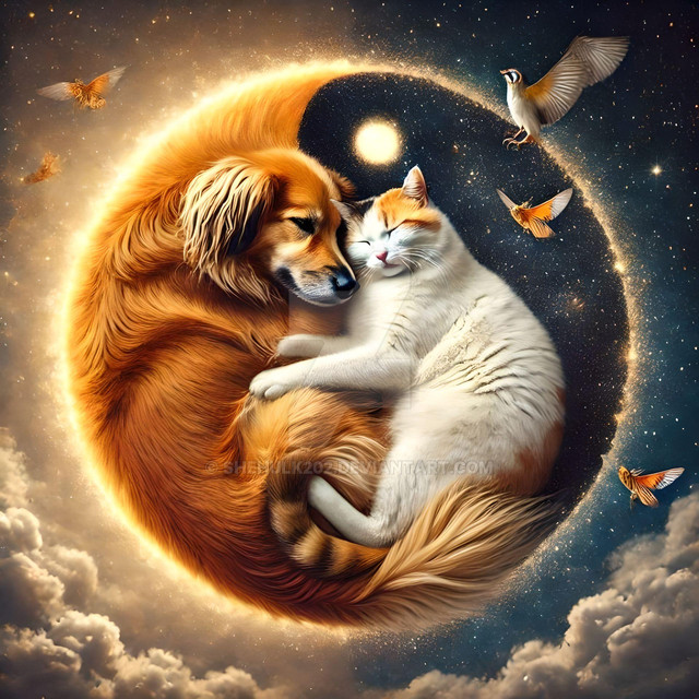 #cat #dog #animalart #digitalart #animal #animals #best_friends #comfort #cuteness #friendship #harmony #hugs #illustration #kitten #painting #peace #pets #puppy #sleep #tenderness #tranquility #warmth #black_dog #sweet_dream #dog_and_cat #ginger_cat #art #love_for_animals #animals_together #home_hearth