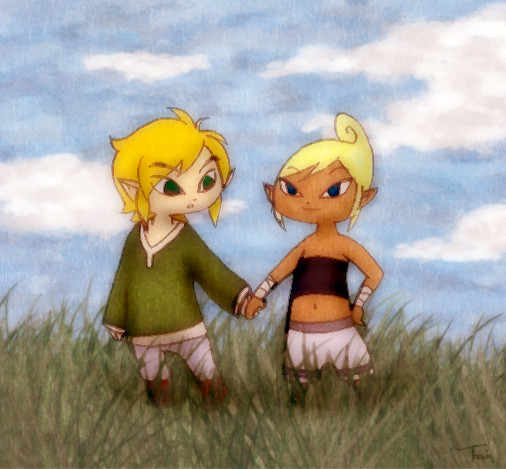 ZOMG it's a background!Another old pic. Gawd, I think I had more drive to draw back then than I do now. And, surprise, another Link and Aryll one. This one actually needed some photoshopping before I was comfortable with posting it; I had a bad habit of drawing wide-set walleyed faces, especially on the kids, but it looks a touch better now.