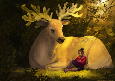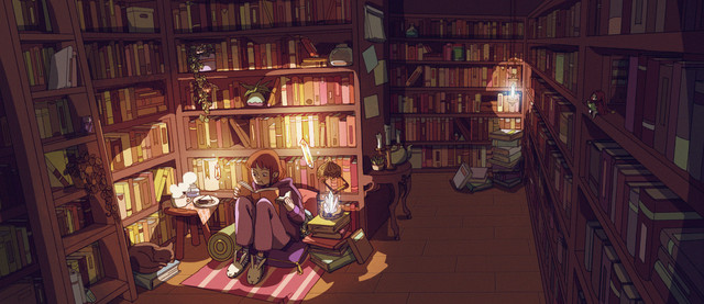#background #book #digital #environment #fantasy #forest #garden #girl #greenhouse #illustration #landscape #painting #reading #tree #woods #art