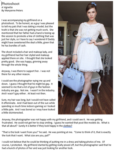 I received a text from my friend Ned: "Get a costume quick, I can get us into a great 1900's party at 1 pm. Meet me at that street corner I talked about." Ned was always a bit excentric but trustworthy so I spent the morning seeking out costume shops for what seemed to fit the 1900s for me. I arrived at the street corner just before 1 pm, Dave my other friend was already there in costume. "Weren't knee pants at that time only worn by small boys?" I asked him."I'm young." he said.