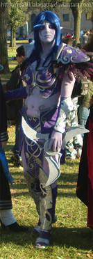 L'armatura... beh. Più che altro mi sembra strano che le parti intime siano riparate da due strisce di tessuto, mentre gli arti e il busto hanno l'armatura in squame di [inserire il nome della povera bestia uccisa per l'armatura] e pelle (o cuoio? O che altro? Non ne so abbastanza °__°). In teoria le parti più delicate non dovrebbero avere una protezione maggiore? Se sono proprio così vuol dire che sto andando in esaurimento da studio *^*