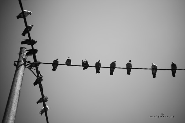 Cela fait vraiment "suite" Γ tes autres photos, sauf que lΓ nous voyons de quels oiseaux il s'agit. Encore une fois il y a une asymΓ©trie avec l'un d'entre eux qui semble avoir dΓ©cidΓ© de te bouder le portrait.. mais Γ§a ne la rend que meilleure. ^^