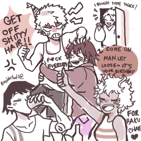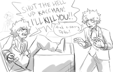 What it says on the tin. Izuku having tea with his two dads who are barely controlling their urge to murder each other...poor inko...