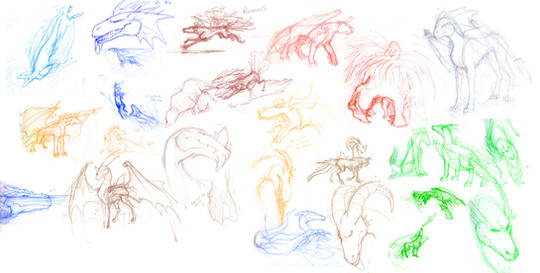 Very interesting, the color gradient is neat on the running take off, and your wing positioning on the cliff drop is very good as well. The green wher is a cutie too, I normally don't like people's renditions of whers (because I'm picky on how they look, I don't even like mine) yours is very well done though! Great leg structure on all of them too.