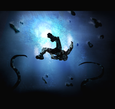 And it was pitch black down there! All I could see was some faint light swimming around the hole I fell through, and a smattering of light beams peeking through the rest of the mat. With no signal from the guys above, and something large and terrifyingly shark-like swimming too close for comfort, I needed badly to swim back to sanity. But nope! It wouldn’t be that easy. You see, those air canisters we’ve been lugging around are heavy, and mine was weighing me down.