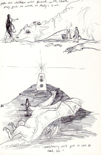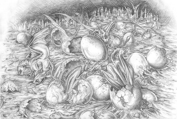 Thanks, that's interesting because that's one of the things I thought was not right in this picture. Now I draw all my pern dragons with a main ridge on the back of the head, and exactly two smaller ridges that stop at the muzzle.