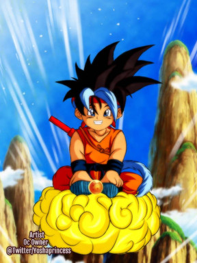 And why is she like basically a female little Kakarot in Dragonball, complete with nimbus cloud and power pole? XD