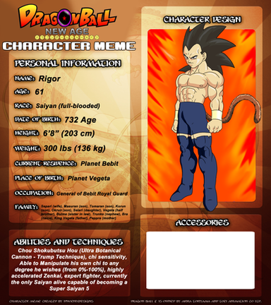 Character Bio Card for Rigor, The Legendary Saiyan.Rigor is (c) me