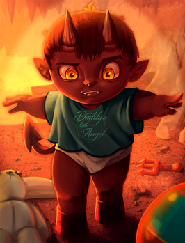Second: When I look to this little devil, I feel comfortable and warm, a nice contrast with the ambient. The atmosphere is great, with a very hellish theme, contrasting again with the little demon. And the colors match with the theme and with each other, creating a nice composition.