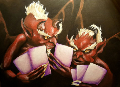i regard the painting as finished, but for improvement for my future works i would like to know what you think about colors, light and atmosphere? and what do you feel if you look at the little devil? every other suggestions are really welcome!